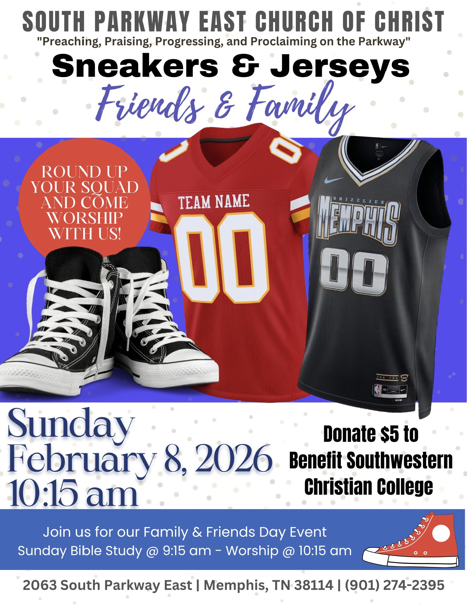 Bible Study starts at 9:15am on Sunday Morning at the church building (2063 South Parkway East Memphis, TN). Join us to learn more about God’s Word!